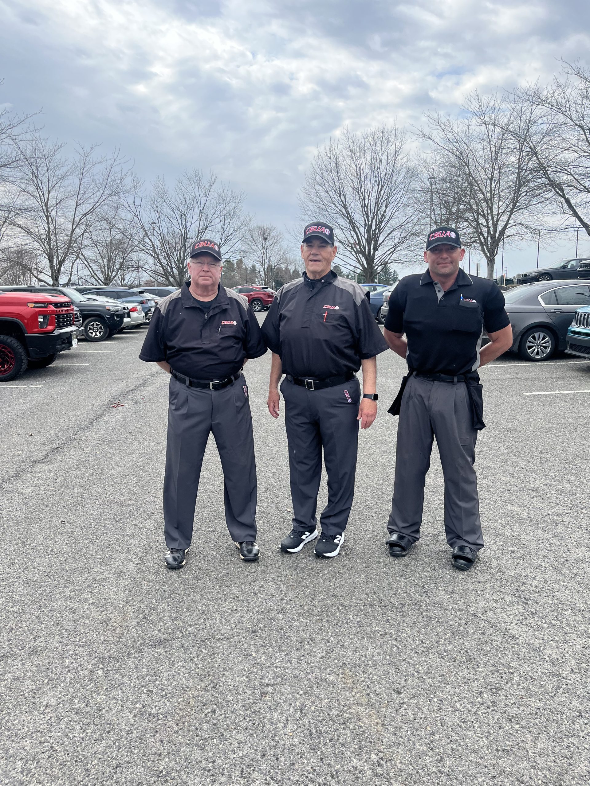 Instructor Mark Lima ready to hit the field with JT Torres and Robert Torres at the 2025 CBUAO Umpire Camp at Legacy Complex on Long Island.